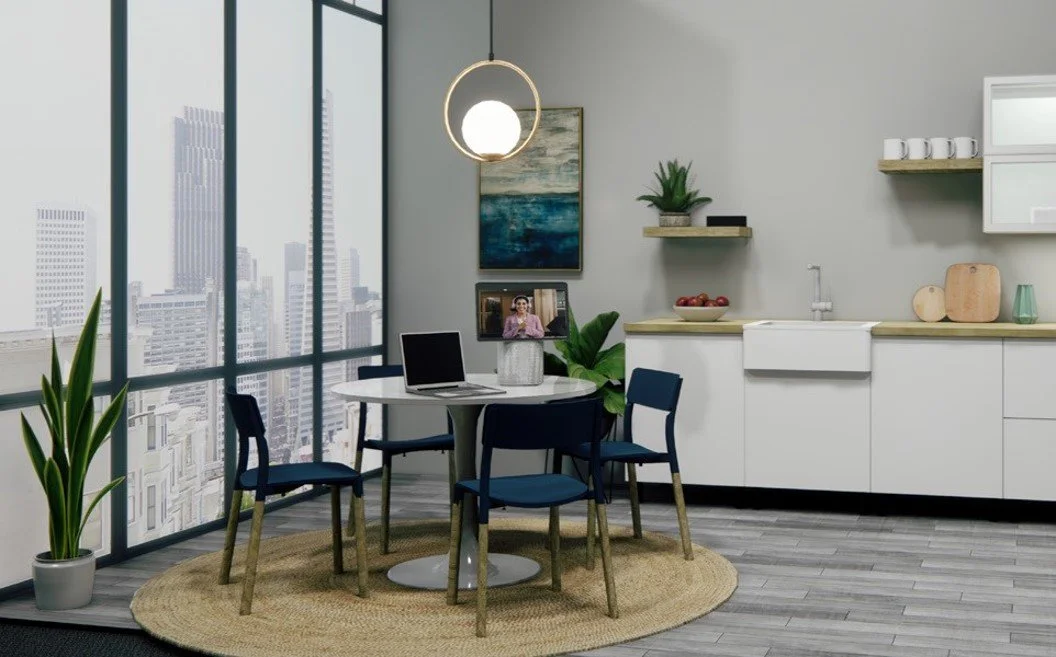 a) tilanteet, joissa kohtaamisen toiset osapuolet ovat pääosin videoyhteyden päässä. Tässä käyttötarpeessa on tärkeää huomioida myös se, että molemmilla puolilla osallistujia voi olla enemmän. Tyypillisiä tilanteita ovat esim. etämyyntitilanteet, osallistuminen isompaan verkkokokoukseen/-koulutukseen, one-to-one palaverit ym. Paras ratkaisu on laittaa neuvottelupöytä poikittain ja pitää tuolit vain toisella puolella kohti etäosallistujia. Toimiva teknologiaratkaisu on kokouslaite ja kaksi vierekkäistä näyttöä vastapäätä osallistujia.
